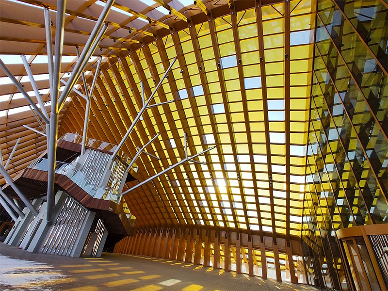 世(shì)園會中國館的鋼結構屋蓋安裝有大量光伏玻璃,光能吸收效率(lǜ)更高,可以更好地適應建築的形態走勢,使得中國館成為一座(zuò)有“生命”的綠色建築。